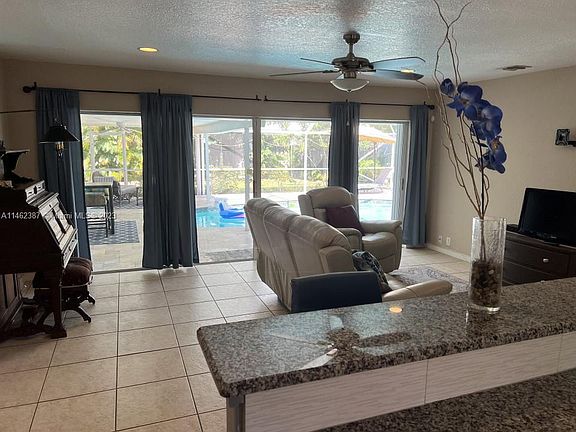 Welcome to Tropical Paradise in the VERY Popular 'Cove' neighborhood. This Deerfield Beach home is a unique opportunity; 3/3, 1630 sqft. home, East of US 1 - Minutes to the Beach! NEW ROOF Sept 2023, Front Door is impact rated with Hurricane Sliders on ALL, SO Easy to Slide, Lock and GO! Beautiful saltwater pool with Trav tile, screened patio with Sun and Shade exposure. Beautiful Palms, Frangipani's, Banana, Mango & Pineapples too - Circular drive and carport. The main house has tile throughout! Central A/C, GE appliances, renovated Kitchen with Granite countertops, a Large Island & Lots of Storage. Living rm/Dining rm, 2 bdrms and 2 full baths The Guest Suite has a private entrance, a mini-split A/C & French doors that open to the pool, Full bath and a Built-in closet!