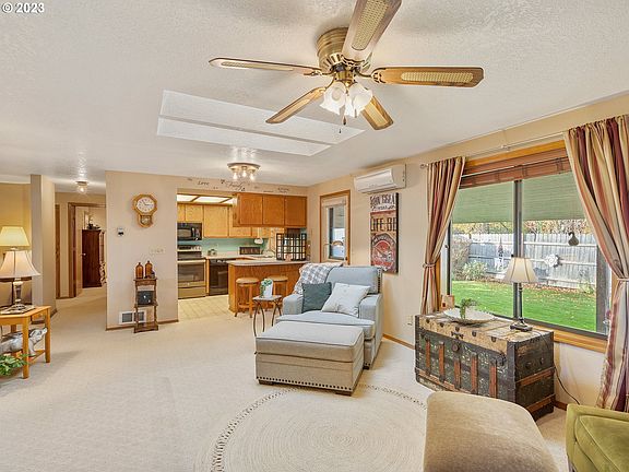 This home is located in USDA Zero Down Loan area. Beautiful one-level home on large corner lot with welcoming front porch and room for RV/Boat/toy parking. Entering the home, you feel the warmth and comfort of being home. Great room floor plan opens to both the kitchen and formal dining rooms. The living room is filled with natural light from windows and skylights with door leading to pristine backyard. The door from living/kitchen area leads to a full length covered patio and pristine fenced backyard with lush landscaping. You will enjoy the many hours of outdoor entertainment in this backyard. Perfect for an outdoor kitchen. The kitchen has an abundance of counter and cupboard space, built in microwave, dishwasher, free standing range, and refrigerator. Huge master suite with full bath, walk-in shower, and large closet. The other two bedrooms are generous in size and closet space. Large laundry room located inside home. 2 car oversized garage with shop area in garage and large outside parking area for RV/Boat and several cars. Close to grocery stores, community parks, library, coffee shops, dining, farmer?s market, schools, and Linfield College campus. Located in wine country, close to tasting rooms, and coast. You will love entertaining in this home. Home is also located in USDA Zero down loan program.