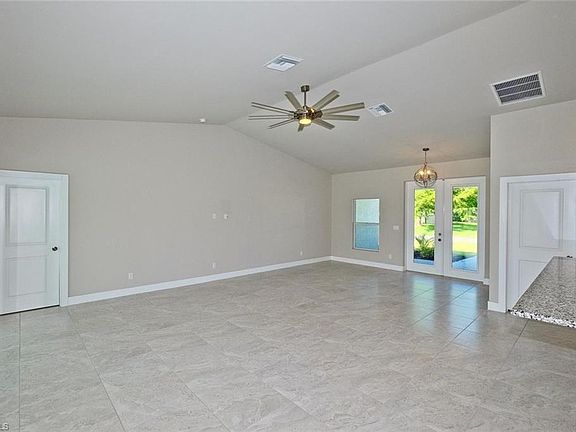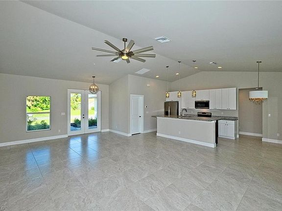 NEW CONSTRUCTION! Beautiful Waterfront home with a Saltwater Pool. Why wait to build when you can buy new today! NO FLOOD INSURANCE REQUIRED! This 3 Bedroom, 2 Bath, 2 Car Garage Freshwater Canal Pool home comes with upgrades galore. This location allows boating access to a total of 7 Lakes. New Seawall with an oversized concrete dock. Designed to entertain...Great room with cathedral ceilings & sliders that open to the oversized lanai, pool, & outdoor shower with views of the intersecting waterways. The Kitchen has 42" White Wood Cabinets, Stainless Steel Appliances, Granite Countertops, above Cabinet Lighting and a huge Kitchen Island. Designer tile flooring is installed throughout all the main living areas and all bedrooms! Master bedroom has a tray ceiling and french doors leading to the lanai. Oversized Master Bathroom with Frameless Shower doors & dual sinks. Upgraded ceiling fans and light fixtures installed throughout. This home has Impact Resistant Windows & Doors, Paver driveway & pool deck, low maintenance landscaping, and automatic sprinkler system. This home is conveniently located with quick access to Veterans Highway & Pine Island Road.