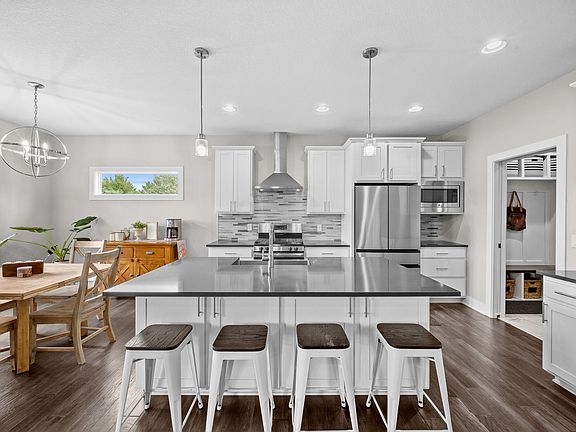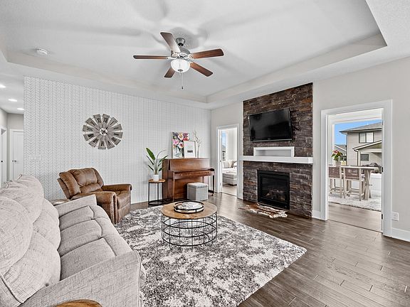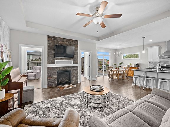 This stunning, modern home offers the perfect blend of style, comfort, and functionality. With nearly 1900sf of open-concept living space on the main floor, you'll appreciate the space for your family or to entertain. The cozy living room features a striking accent wall and stone fireplace. The crisp white kitchen boasts quartz countertops, stainless steel appliances (gas range), pantry, and double sided island providing great storage for all your culinary supplies. The light filled dining space leads to the the expansive composite deck with bump out for your grill. Unwind after a long day in the recently added 24'x12' sunroom, where you can soak up the breathtaking western sunsets.The luxurious primary suite offers a tranquil retreat with a tray ceiling, dual vanity, tile shower, and a generously sized closet. Two additional bedrooms, a full bathroom, and a convenient mudroom and laundry room complete the upper level. The walkout lower level provides an additional 1100+sf of versatile living space, perfect for entertaining or simply relaxing. The spacious family room, complete with a wet bar, creates a welcoming atmosphere. A large bedroom and full bathroom offer comfortable accommodations for guests or teens. The oversized covered patio extends your outdoor living space, ideal for hosting gatherings or enjoying quiet evenings. With ample storage options, including a large storage room, a shed, and a heated three-car garage, this home offers everything you need.
