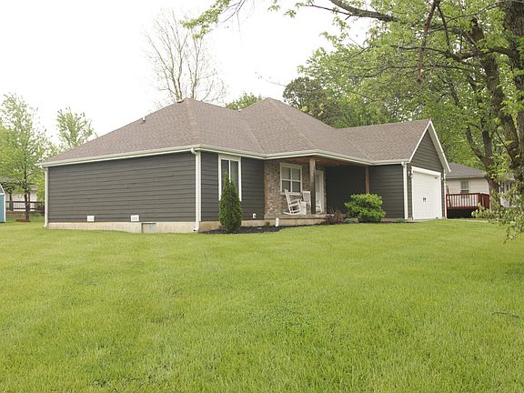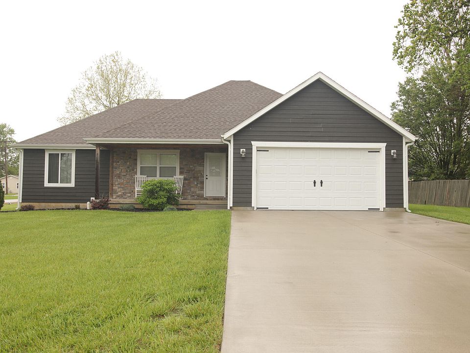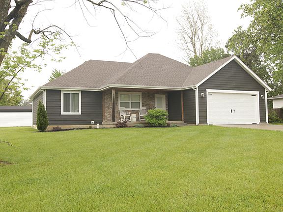 This beautiful single level home was built in 2021 & has 1493 square feet of living space. It features an open floor plan with 3 bedrooms & 2 bathrooms with a 2 car garage on a level corner lot in Marshfield MO. The kitchen features stainless steel appliances (refrigerator not included), recessed lighting, granite counter tops, a solid wood island & a nice sized dining area. The master bedroom & living area both have high cathedral style ceilings with a wooden plank covering. The master bathroom features a walk in tile shower with dual shower heads, a dual sink vanity with a granite counter top & a large walk in closet. The home features tile & engineered hardwood flooring throughout, a central electric HVAC system & an electric water heater. There is a back deck that is perfect for those summer BBQ's with plenty of yard space for activities! The front porch is covered & has a beautiful stone accent wall & it's the perfect place to unwind in your favorite chair after a long day! Don't miss your opportunity to make this place your NEW HOME!