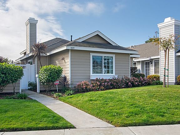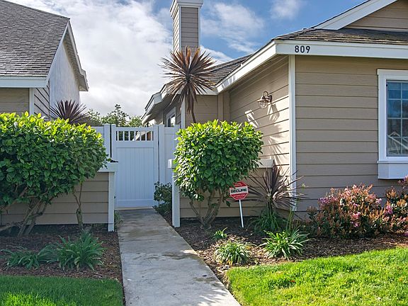 A stunning beach cottage in the sunny, coastal gated community of Harbor Pointe! Vaulted ceiling in dining area creates sunlit, bright open-flow floor-plan with no walls to separate living & dining. Gorgeous glass tiles in kitchen featuring Carrera marble countertops, stainless appliances & engineered hardwood walnut floors throughout. Upgrades include dual pane windows, French doors off dining area, central air, beautiful bathrooms, all solid-wood interior doors, gated patio. Loft/3rd bedroom upstairs.