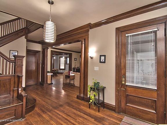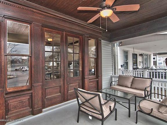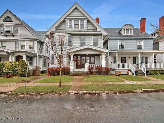 Beautifully remodeled home with gorgeous woodwork and amenities in every corner. Semi-open floor plan on the first floor with a stunning foyer and French doors in the living room, opening to the front porch, as well as a working wood fireplace. New kitchen with tile backsplash, granite counters, center island, all appliances included. Bathroom on each floor, all new with beautiful tile work and fixtures and space. Large master bedroom, built-in's and great closets. Second floor den leads to a rear balcony space overlooking the fenced-in backyard. Third floor offers more bedrooms or living space. New electric, roof, plumbing and so much more. Very desirable block in the Historic Hill Section of Scranton. Brick garage could be used for storage, small vehicle storage or a workshop.