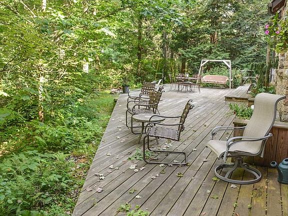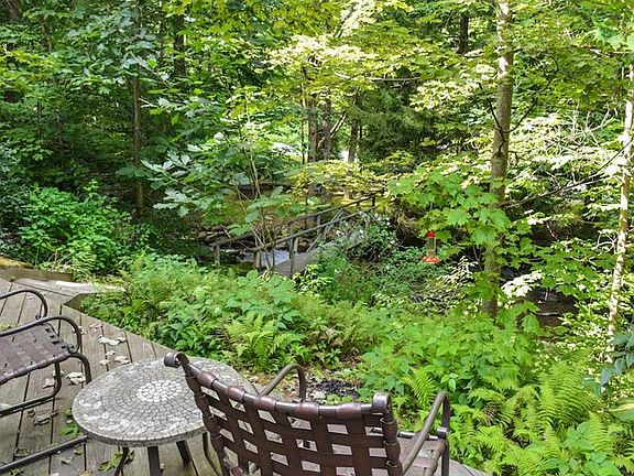 Enjoy the Laurel Highlands in this remodeled contemporary home. Built by local craftsmen, just off Seven Springs Resort with easy 4 season access. Stroll the foot bridge over Allen Creek in front and view the private trout pond in back. Lush native trees, wildflowers and fresh water springs provide pristine, USGS certified no need for treatment/filtration. Enjoy endless, excellent drinking water. Stone fireplace, cast iron wood stove, custom kitchen, lodge furnishings and game table create a perfect retreat. 1st floor guest bedroom, upstairs are 2 big bedrooms and a large master suite with Jacuzzi tub and huge closet. Includes whole house sound system, access to cable/security system. 2 detached garages accommodate 3 vehicles. One has spacious attic with private entry for bedroom/storage. The other has a large pantry w/refrigerators and storage. Upper level heated and air-conditioned game room has pool table, shuffleboard, TV & music providing entertainment for the whole family,