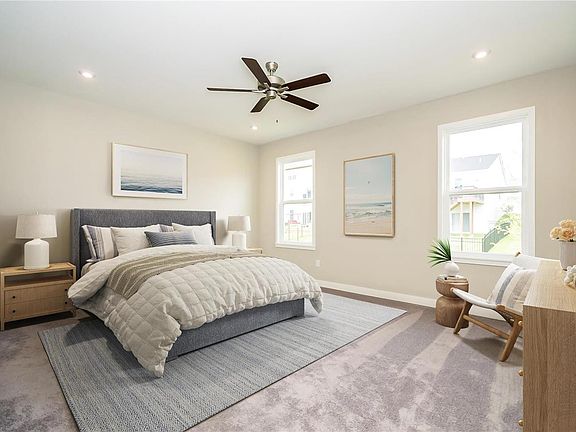 New Construction in The Streets of Caledonia, the Calvin Western Craftsman offers a welcoming covered front porch, an open floor plan that features a family room with a fireplace, and a private study with double doors. Open kitchen with granite counters, 42-inch cabinets, walk-in pantry, island w/seating space, and stainless-steel appliances all open to the family room and morning room. Main floor primary bedroom has a spacious walk-in closet and private full bath with both a tub and a shower. Two additional bedrooms share a centrally located hall bath with a double sink vanity, full basement with full bath rough-in and two-car garage.