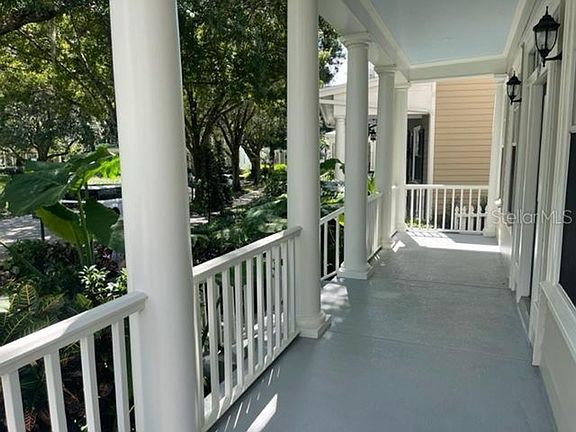 4 Bedroom, 3 Bathroom Singe Family Home in the Main Village of Celebration. This home has picturesque double- front porches with views of Veranda park in the front of home. Enjoy a short walk to everything in town, including the Celebration K-8 School, shopping, dining, seasonal activities and the scenic atmosphere at the heart of what Celebration has to offer. Inside the home, you will find updates have been done to enhance the home for your enjoyment and comfort, new lighting fixtures and new ceiling fans throughout. In addition, the home has been freshly painted on the entire interior. There is one bedroom on the first level with a full bathroom. The large Living Room and Kitchen combination features vaulted ceilings and a wood-burning fireplace. Living Room opens up to a large newly landscaped fenced- in backyard. New Kitchen with Shaker cabinets, Quartz countertops, stainless steel appliances and all new wood-look ceramic tile flooring in the Living Room and Kitchen. Master Bedroom on the Second level has a large bathroom with shower and separate soaking tub and huge walk -in closet. There are two additional Bedrooms and a Bathroom on the second level with access to the large second floor balcony. This home has a 2-car detached Garage. Included in the rent is Trash, Lawn Care and enrollment in Blue Sky Property Management's Resident Benefits Package which includes renters insurance, HVAC air filter delivered monthly, On demand pest control, credit building to help boost your credit score with timely rent payments, $1M Identity Protection, move-in concierge service making utility connection and home service setup a breeze during your move-in, our best-in-class resident rewards program and 24/7 Maintenance. Pet Friendly!