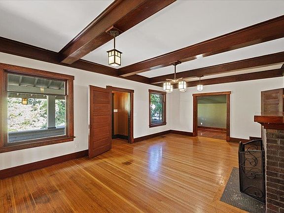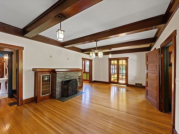 You’re going to fall in love with this 2+ bedroom South Hill Bungalow. As you approach, a welcoming covered porch sets the stage for what’s inside. Step through the front door to discover oak wood floors, exquisite natural woodwork, and a stunning fireplace framed by leaded glass built-in bookshelves, complemented by beamed ceilings and Mission-style lighting. The formal dining room features a beautiful built-in sideboard and China hutch, along with lovely windows and original wood accents. French doors open from the living room into an atrium with windows on three sides, filling the space with natural light. Adjacent to the living room, you’ll find an office/library area, perfect for work or relaxation. The kitchen is equipped with stainless steel appliances, including a gas range with a commercial hood vent, and Cherry cabinets. There is potential for MIL suite or rental income in the basement.