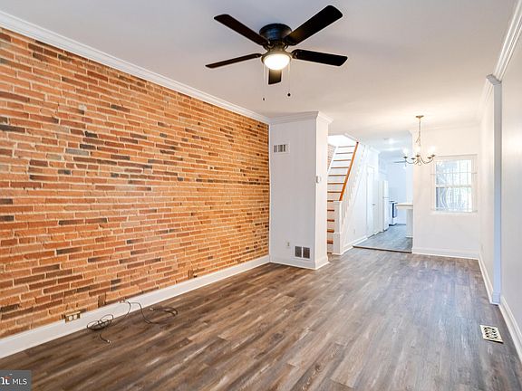 Welcome to this end-of-group 2BR/1FB brick rowhouse on a large double lot in the heart of Baltimore City, just steps away from the vibrant Camden Yards area. This home boasts an ideal location, with easy access to downtown Baltimore, University of MD campuses, major highways, and public transportation. This house was just fully painted. As you enter the home, you'll be greeted by a living room that features exposed brick walls, beautiful floors, high ceilings, and a new light/ceiling fan. Pass through the dining area with a beautiful chandelier to the kitchen with access to the backyard. Upstairs, you'll find two generously sized bedrooms, each with ample closet space and plenty of natural light. The lower level features a laundry area with a washer and dryer plus a multi-use room in the front with new flooring and lighting. Outside, you'll find a HUGE fully fenced side/rear lot with an alley gate for secure parking. You can park multiple cars and still have ample room for outside entertaining and a garden. This home's location is unbeatable, just a short walk to Camden Yards, home of the Baltimore Orioles, and close to many other popular city attractions such as the Inner Harbor, M&T Bank Stadium, hospitals, and numerous dining and entertainment options. Don't miss out on this fantastic opportunity to own a piece of Baltimore City living at its finest. Schedule your showing today!