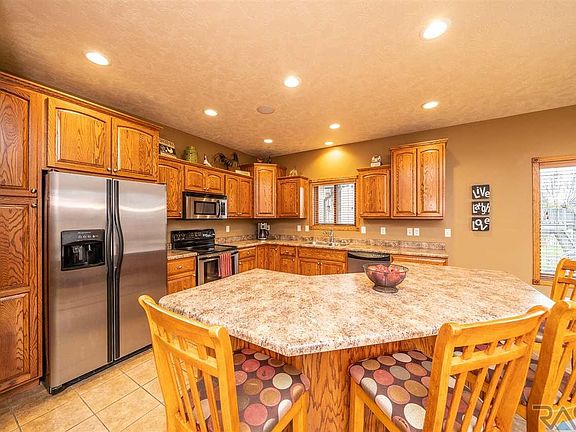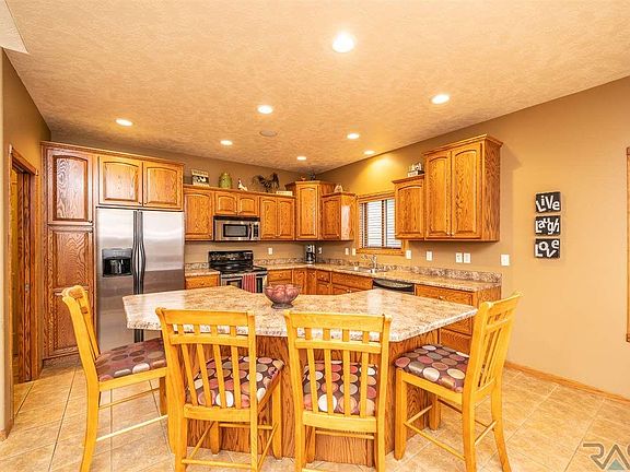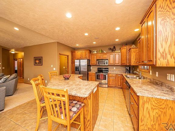 Beautiful Ranch style home in South Sioux Falls; w/5 bedrooms, 3 full baths, 3-stall garage, 2 fireplaces, wet bar & a main floor laundry. Main level features spacious entryway w/2 bedrooms w/WIC plus; lg master bedroom w/huge WIC & master suite w/tile floor, 2 sinks, whirlpool tub, shower & stool. Living room is open to the kitchen & dining; including a gas fireplace & vaulted ceilings. Spacious dining room features tile flooring & door to the deck. Kitchen includes SS appliances, lots of cabinets/counter space & a huge island w/great seating. Off the kitchen is the laundry/mud room including the washer & dryer. The lower level family room is very spacious including gas fireplace & wet bar. Also, in the lower level are 2 large bedrooms both w/WIC. The 3-stall garage includes a propane heater, drain & Hot/Cold water hook-ups. Home has been recently painted on the exterior; featuring great landscaping & a raised garden.