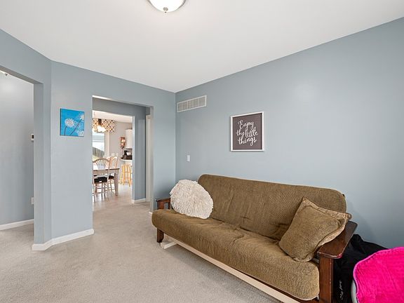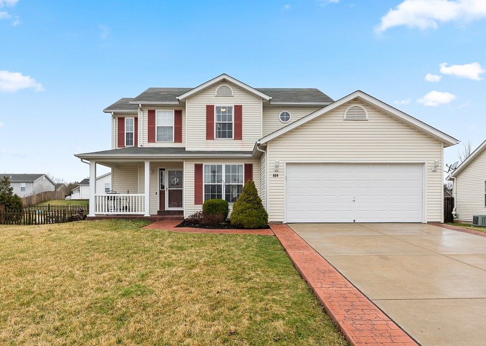 This very clean, 4B/3.5BA, home is located in the Warrior Ridge subdivision. Start your day off right by enjoying a nice cup of coffee on the over sized-covered, front porch. Once inside, you'll love all the natural light! The open floor plan includes a good sized entry foyer with coat closets, dining and family room, and eat in kitchen with plenty of space. Off the kitchen you'll find the main floor laundry that leads into the two car garage. Upstairs boosts two full baths and three bedrooms. The master suite has a gigantic walk in closet! The master bath includes a double sink vanity, separate shower, and whirlpool tub. Downstairs hosts the 4th bedroom with walk-in closet, lounge/rec area, and full bath. In addition, it has a newer water heater, water softener, and Vivint whole home alarm. Last but not least, the HUGE back patio is amazing and perfect for entertaining!