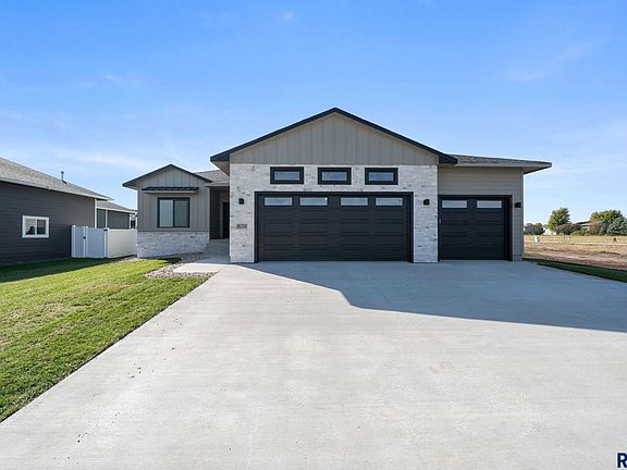 Welcome to Tiger Meadows in Harrisburg! This brand-new ranch home comes loaded with upgrades and modern design. The main level features 3 spacious bedrooms, including a stunning master suite with trayed ceilings, tiled bathroom, in-floor heat, quartz double vanity, and a walk-in closet. A dedicated mudroom and laundry room add everyday convenience. The open floor plan is perfect for gatherings, vaulted ceilings in the living room and a cozy stone fireplace. The kitchen impresses with quartz countertops throughout, a walk-in pantry, stainless steel appliance, and a stylish blend of painted and stained birch cabinets. Step out from the dining room to the 10x14 covered deck and enjoy a backyard that’s already finished with sod, sprinklers, and a vinyl privacy fence. Inside, you’ll love the durable luxury LVP flooring throughout. The heated, finished garage includes a floor drain and heater—ideal for projects or extra comfort in the colder months.