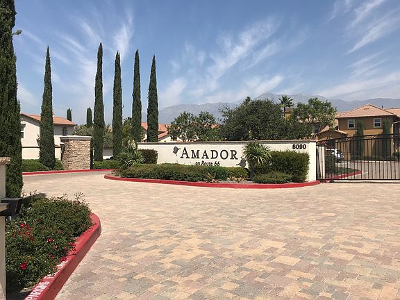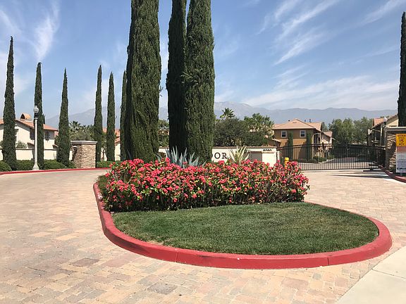 Located in a quiet gated community you'll find this neat and spotless, newer built, upgraded, 4 bedroom, FHA approved, view home with one downstairs bedroom and 3/4 bathroom. Features of this property include: the most private entryway and front yard in the entire community, an excellent floor plan, a living room with a fireplace, a familyroom/dining room, a kitchen with quartz counters and a center island, a huge master bedroom with it's own balcony & a walk in closet, a four fixture master bathroom with a separate shower and spa tub, an indoor laundry room, forced air heat and central air conditioning, recessed lighting, ceiling fans, mirror wardrobe doors, a private patio and a 2 car attached garage with pedestrian access to the home. Community features include: an Olympic-size swimming pool, a BBQ area and playground, beautifully landscaping and hardscapes, and a patrol service. This complex is conveniently located near schools, shopping, freeways, restaurants, transportation, and Victoria Garden!