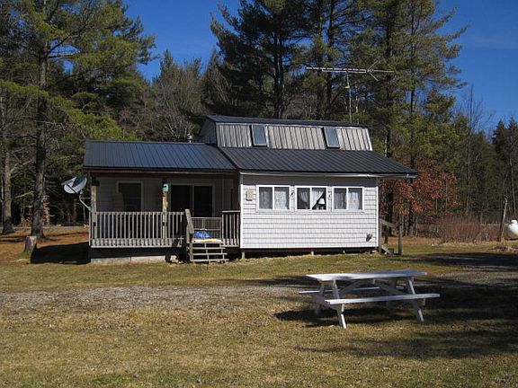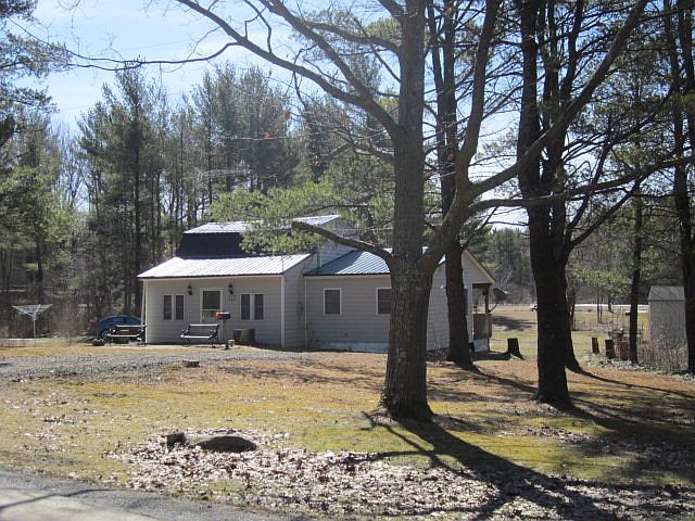 Gambrel roof cottage on 14 acres with large pond! House has spacious master bedroom w/ sliders to covered back deck. One and half baths (master has bath). Upstairs not finished but could easily be 2nd bedroom. Large living room, small kitchen opens to dining room with great natural light and view towards pond. Property is level with year 'round access. Close to wineries & Keuka Lake. Plenty of storage in the 4 sheds! Conventional mortgage only!