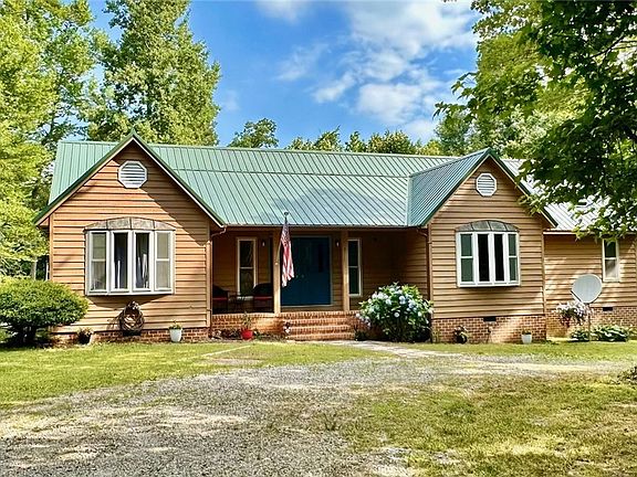 Come enjoy the Privacy, Peace and Tranquility of Country Living! This charming Cedar siding ranch home features 1928 square feet of living space, a country front porch, a huge back deck, a metal roof, and sits on 5 acres. As you walk in through the gorgeous double doors, you are greeted with a large family room with tall ceilings, LVP flooring, a ceiling fan, stone fireplace, skylights and a sliding door to the wonderful back deck. The open concept kitchen & dining area are just off of the family room w/ LVP flooring, lots of wood cabinets / pantry cabinet, ceiling fans, and a bay window. The stove, refrigerator, and dishwasher (2024) convey with the home. The primary bedroom also has a skylight, carpeting, ceiling fan, and his & her closets. The primary ensuite bath has a jetted tub, shower, single vanity and LVP flooring. Two additional bedrooms on the opposite side of the house allow for privacy and feature carpeting, ceiling fans, and closet space (front bedroom has a bay window). There is a shared full hall bathroom with a tub, toilet, and single vanity. The utility room features LVP flooring, washer & dryer hook-ups, water heater (2023), and a door to the back deck. The Huge back deck (12X 30) makes an awesome entertaining space. The back yard is fenced and conveys with a rabbit coop & the large carport. The home has a whole house water filter and a generator that convey as well. The seller will provide an AHS home warranty. The home is being sold “As-Is” and inspections are for informational purposes only. Underground propane tank is rented from Parker Oil.
