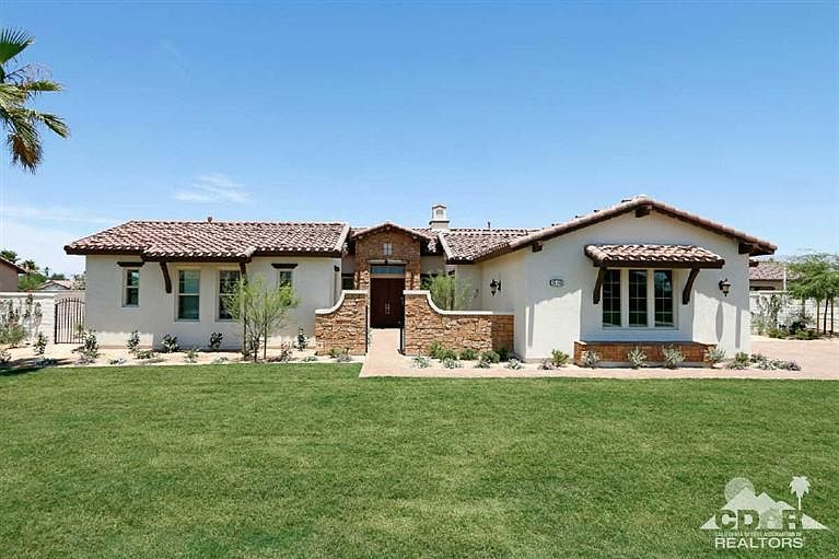 Move in today to this recently completed new construction luxury home in the gated community of Stonefield Estates in Southwest Indio. This developer offered Adobe Ranch Plan-1 home features four bedrooms and four baths including a large two-room Casita suite. The great room features wood beamed ceilings and overlooks the pool area. Luxury amenities are standard including an impressive Chef's kitchen with Wolf & Sub-Zero Appliances, oversized center island, and granite slab counters. Additional features include crown molding, front & back landscaping, pool, spa & built-in grill, paver driveway, paths and decks, a three-car garage with epoxy floors and much more. Low HOA's of only $170 per month. At completion, the community of Stonefield Estates will feature just 41 luxury homes from 3,500 to almost 5,000 square feet on lots averaging one-half acre. Just minutes from shopping, dining, golf, tennis, hiking and biking. Come enjoy all the desert has to offer at Stonefield Estates!