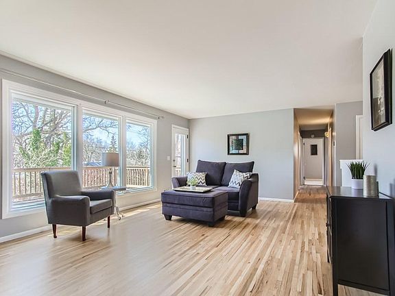 Welcome to this lovely and light 4-bedroom walk-out rambler conveniently located in the heart of Golden Valley. The living room shines bright with its newly sanded and stained hardwood floors overlooking the South-facing spacious deck and flat backyard. All 3 bedrooms on the main floor have hardwoods underneath the carpeting. The primary bedroom features a walk-in closet and ensuite 1/2 bath while the lower level bedroom just off the sprawling family room offers a 3/4 ensuite. The main level also features a full bathroom with linen storage across from the 3rd bedroom currently used as an office. You will love having easy access to your 2-car garage from the eat-in kitchen. Enjoy peace of mind with a new roof in 2022, new furnace and AC in 2020 and a new water heater in 2018!