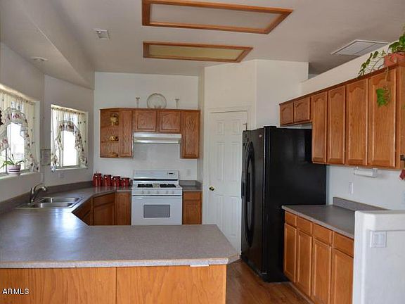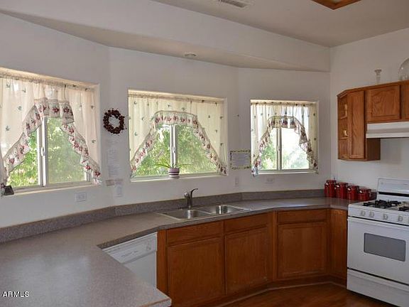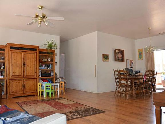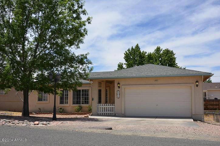Wonderful little home in the heart of Prescott Valley. 1393 sqft, 1998 construction with split open floor plan and fenced back yard. 3 bedroom, 2 bath homes with laundry and 2 car garage has covered back deck and mature trees in front and back yard. House has NO carpet! All floors are tiled or have laminate wood floors for easy care! Great value in the center of Prescott Valley.