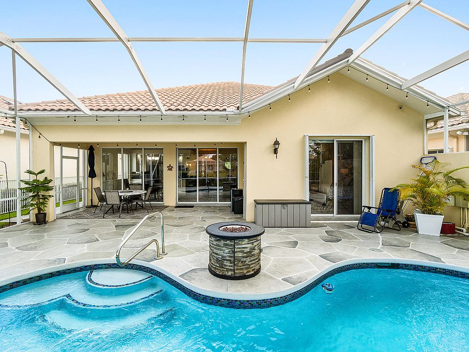 Additional highlights include: Fenced Dog run adjacent to backyard, Accordion shutters for storm protection, Spacious 2-car garage, Located near a walking bridge to the main clubhouse, Light, bright, and airy ambiance throughout