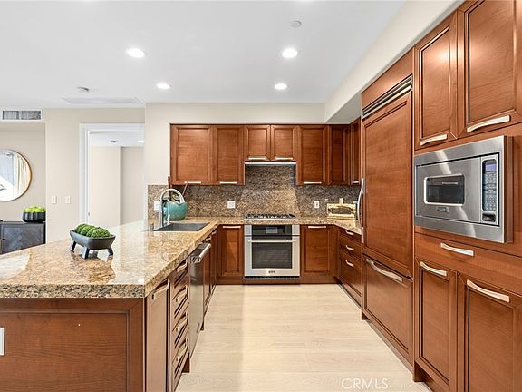 As you step inside, you'll be greeted by floor-to-ceiling windows in every room, allowing an abundance of natural light to fill your living spaces. Enjoy views of Newport Beach’s Fashion Island, the San Juaquin Wildlife Sanctuary to the Palos Verde Peninsula. The open floorplan with an oversized great room provides an ideal setting for both relaxing and entertaining with an adjacent office or den. The kitchen is a chef's paradise, equipped with new top-of-the-line built-in Viking luxury appliances, making meal preparation a joy. Oversized built in office makes it perfect for those who work from home.