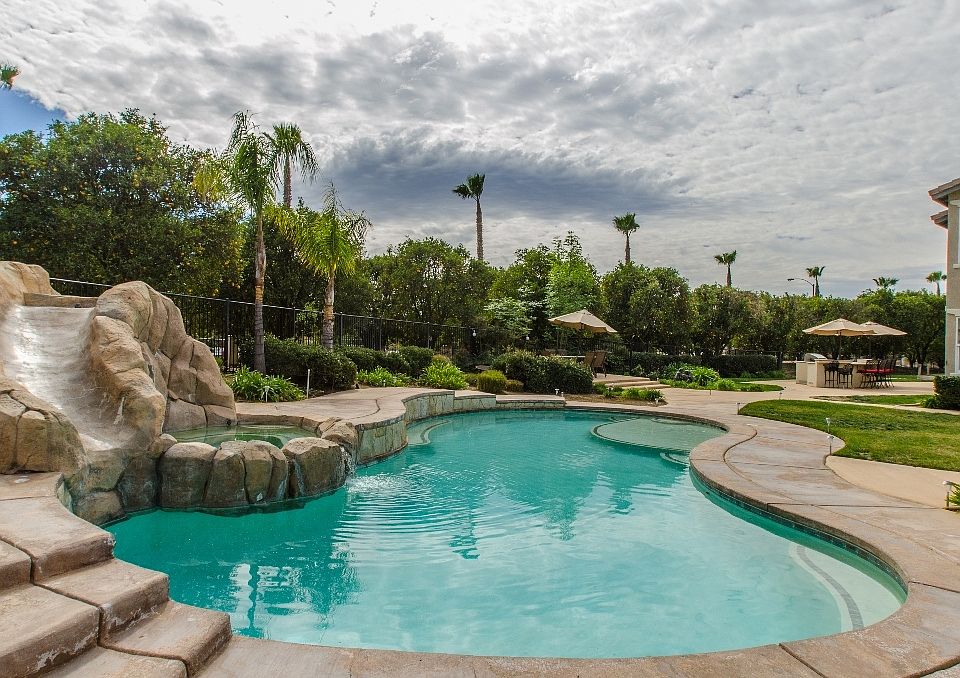Uniquely Riverside, gated orange grove community of Rancho Valencia, highly desirable balance of functional luxury and affordability. Resort-like yard with 17' BBQ entertainment island, 44'X20' solar heated pool, rock slide, spa, gated 100' of RV parking (we have 40' RV + power boat). Top scoring neighborhood schools! The Home--Downstairs: "Great room" with loads of comfy seating, wall mounted television, extensive built in media/book storage, over-sized island, informal dining (seats 10), built in frig, walk in pantry; guest room with 3/4 bath; Big Laundry room, separate craft closet, home office + powder room, formal living and dining rooms. Upstairs: huge fun-filled game room, kids' bedrooms adjoining Jack and Jill bath, sumptuous master suite (900 sq ft+) w/ spa bathroom, his and hers walk-in closets, & elevated retreat/study overlooking pool area (retreat could be nursery). Understated, professionally-designed, traditional decor in neutral tones, new carpet, and 2-year new furnace and A/C upgrade. Joy and memories await your family in this safe, friendly, cul-de-sac setting with with private streets and friendly neighbors. Groves maintained by HOA, yet unlimited harvest and hikes for you. This property is the sweetest pick---Welcome home!