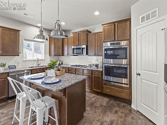 Discover a beautifully designed home in the heart of highly regarded District 20. This thoughtfully crafted 4-bedroom, 3-bathroom residence (4th bedroom is non-conforming) offers a blend of functionality and comfort. With an ideal balance of living space, flexible living options, and a standout kitchen, this home suits a variety of buyers’ needs. The gourmet kitchen impresses with high-quality appliances, including a double oven, gas drop-in range, and stainless steel refrigerator. Warm cabinetry, granite countertops, and a spacious walk-in pantry add a touch of sophistication while ensuring practicality. The main living area features rich wood floors and flows into a welcoming living room, complete with a fireplace that adds warmth and charm. A versatile bonus space can easily adapt as a home office or formal dining room, offering flexibility to meet your unique needs. Upstairs, an expansive loft opens up endless possibilities—ideal for a media room, play area, or creative workspace. The primary suite serves as a peaceful retreat with a luxurious 5-piece bathroom and an oversized walk-in closet. Two additional bedrooms, each with walk-in closets, provide generous storage and comfortable living spaces. Outside, the backyard is ready for relaxation and gatherings, featuring a spacious patio and a cozy fire pit for cooler evenings. With its well-planned design and inviting features, this home is a delightful combination of style and practicality, ready to welcome its next owners.