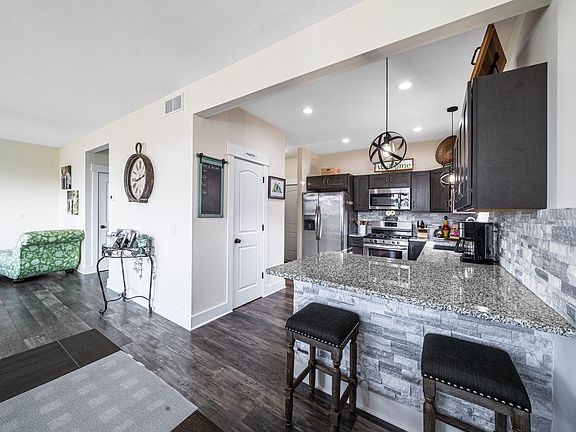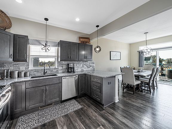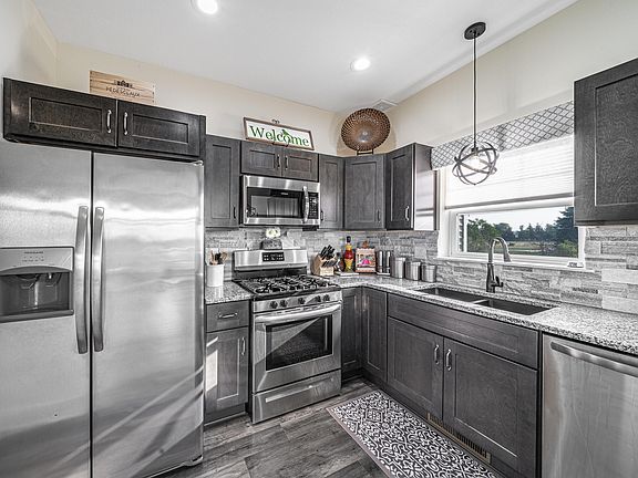 Welcome to this charming 3-bedroom, 2.5-bathroom home, nestled on a serene 1-acre lot in the peaceful Orchard Estates neighborhood. From the moment you step inside, you'll be greeted by the open-concept layout and beautiful laminate flooring that flows throughout the main level. The spacious living area is perfect for entertaining, featuring sliding glass doors that lead to the back deck, where you can enjoy the tranquility of your expansive backyard. A convenient half-bathroom for guests is also located on the main floor. The kitchen is a cook's dream, boasting stunning granite countertops, ample cabinetry, and all appliances included, along with a pantry for extra storage. You'll appreciate the easy access to the attached 2-car garage, perfect for unloading groceries or tackling everyday errands. Upstairs, you'll find two generously sized bedrooms, a well-appointed laundry room with both washer and dryer included, and a full bathroom. The primary bedroom is a private retreat with its ensuite bathroom, featuring a double-sink vanity and a spacious walk-in closet. The finished basement adds even more value with a cozy family room, egress windows for natural light, and a convenient kitchenette complete with a microwave, mini fridge, and an in-wall double oven, ideal for hosting gatherings or movie nights. Outside, the expansive backyard offers plenty of space for outdoor activities, gardening, or simply relaxing in the peaceful surroundings. The property also includes a basement mitigation system for added peace of mind. This home has it all, combining modern amenities with a tranquil setting. Don't miss out on this incredible opportunity, schedule your showing today!