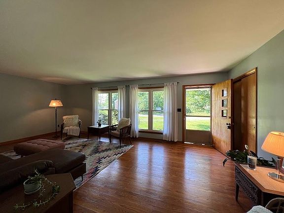 Beautiful Bedford stone and brick ranch home on 1.76 country acres 2 miles from I-74. Custom built in 1964 as an Energy Star total electric home. Includes 3 brms, 1.5 ba, hardwood floors, laundry chute, full unfinished basement w wood burning fireplace and 2 car attached garage. Features modern HVAC system, two car detached garage in backyard with a small wooded lot at end of property along. Enjoy the breeze of the mature walnut and pine trees as well as a firepit on summer nights!