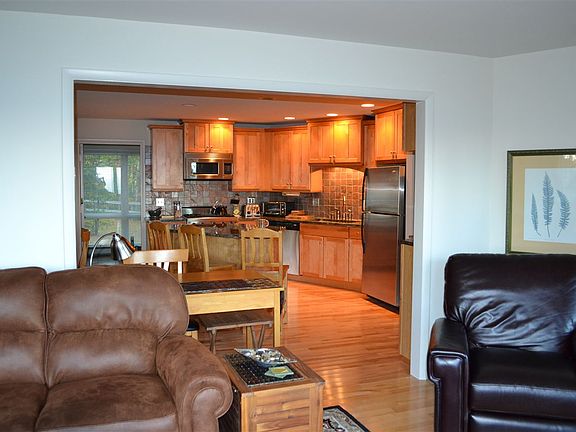 Majestic views of Burt Lake from one of the highest points overlooking the lake. Access the lake via the tram to the waterfront. Well designed house with many angles and a focus on Burt Lake. The house has been remodeled with an open concept. Well equipped kitchen with Viking Range, Viking Microwave and large premium GE refrigerator. Green Marinace granite countertops complement the kitchen and bathrooms. The main house has 2 bedrooms and a loft. In addition, guest quarters above the garage includes 2 bedrooms, 1 full bath, kitchen, dining and living rooms, and an upper deck. Deep lot. Conveniently located near 1-75 and close proximity to Indian River, Alanson, Petoskey and Gaylord.