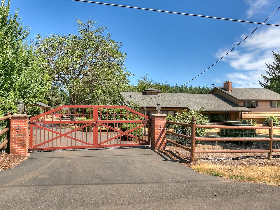 Macleay district with 7.58 Acres! Gated paved entry to 2264 SF tri-level home with recent updates, beautifully landscaped; fruit trees. 4 bdrms, 2.5 baths, Huge Rec Rm in lower lever with new flooring. FA Gas; Fireplace plus wood stove. Huge covered deck with hot tub for outdoor enjoyment. 3+ acres in pasture, fenced and cross fenced; 3+ acres in forest. 68x26 Shop; 42x26 Loft Barn; 58x48 Barn; 26x14 Barn extension.