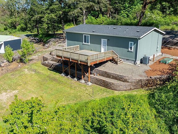 Experience tranquility in this .3-acre retreat with a move-in ready 2019 manufactured home, offering 1,263 sq ft of open-concept living. Features include heat pump for efficient cooling this summer, vaulted ceilings, recessed lighting, and panoramic woodland views. The expansive wood deck is perfect for relaxation. The kitchen boasts sleek cabinetry and an eat-in bar, adjacent to a utility room with ample storage. Includes two bedrooms and two baths; the owner's suite has dual vanities and plentiful storage. Exterior features include a concrete driveway with plenty of parking, nicely built retaining wall, and concrete path that leads to the secluded backyard. Located minutes from Hwy 18, this property offers easy access to the Oregon Coast, McMinnville, and Salem, making it perfect for those desiring a calm, low-maintenance living experience while still enjoying proximity to city amenities.