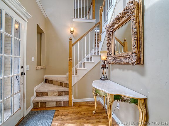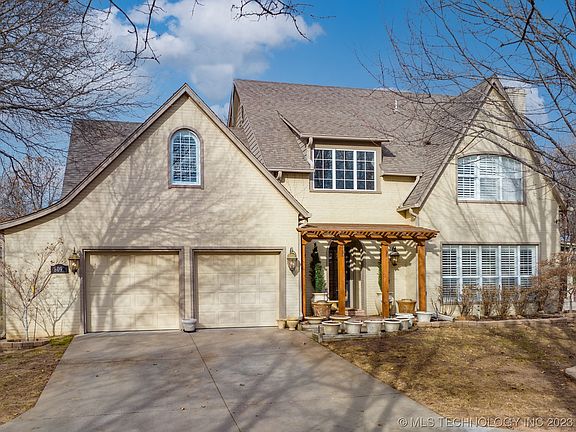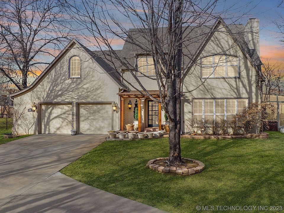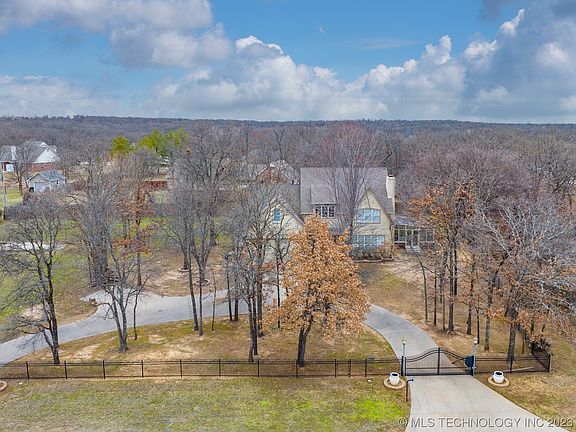 CALLING ALL MY LAKE PEOPLE! Skiatook Lake Home w/full marina service a mile away. This country cottage chic home couldn't be any cuter. Huge climate controlled sun room with beautiful tree views. Two double doors that lead to the front and back yard only 4 years old. Walking into this house you will notice soaring ceilings and a split stairwell dividing the gameroom from the other three bedrooms and full bath. Downstairs has a large living room with beautiful plantation shutters and open to the sunroom and dining room. Kitchen has double ovens and large Thermidor cooktop, large pantry with a cute brick wall that leads to the backyard. The laundry room is next to the primary bedroom and has abundant storage and a large sink. Primary room has a walking closet, exterior door to backyard, and a fantastic bathroom that consist of relaxing whirlpool tub, walking shower and private toilet room. The exterior of the home features Cedar pergula, private electric gated entrance, circle drive, corner lot with beautiful mature trees, Dog run with a large dog house, newer gutters with gutter guards, custom privacy fence and decorative fencing, front and back of house is fenced.