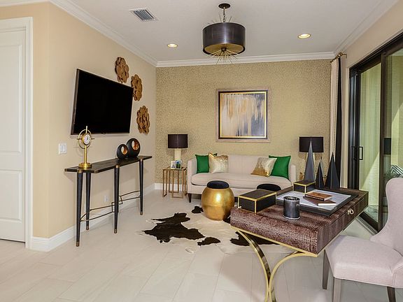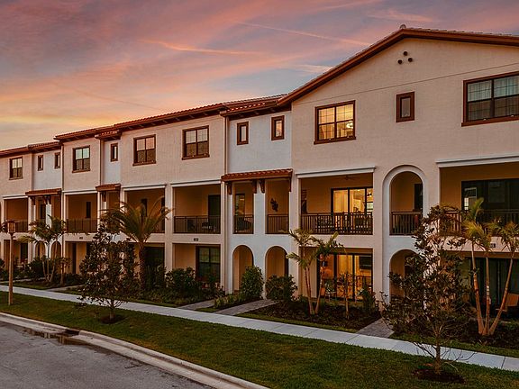 Kitchen offers a large island with breakfast bar, Cambria Summerhill quartz countertops, white cabinetry and matte white Granite Falls tile throughout the Main Living Space. Owner's Suite is situated on the third floor and features a private covered balcony, coffered ceilings, dual sink granite vanity and frameless glass enclosed shower.* This Move-In Ready home in Alton is located in Palm Beach Gardens. Some home images may contain additional upgrades, finishes and/or features not included. Floorplan shown is base model and may not include structural options in this home.
