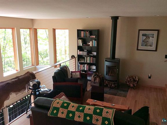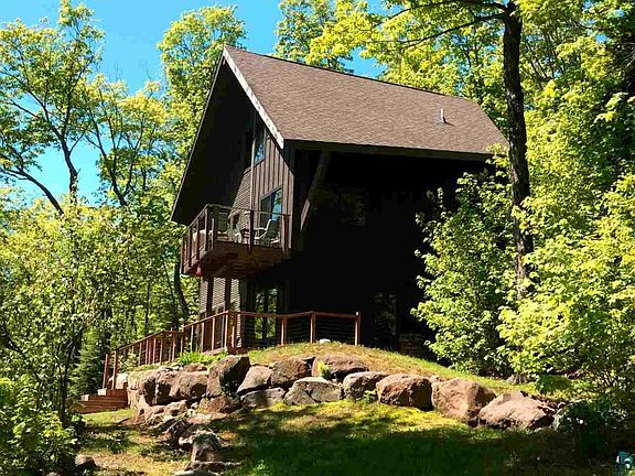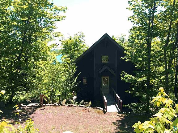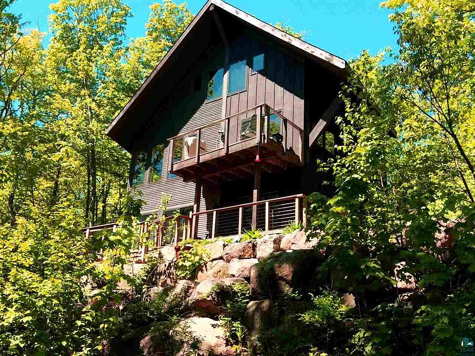 Seclusion and Serenity in Maple Forest. This immaculate home is situated perfectly into the terrain with rock outcroppings and stunning views through the tree tops. The 2 bedroom, 2 bath home is a Mulfinger design, specifically married to this site, providing a tree house feel. From the bridge to the front door, the tiered decks, boulders and bedrock outcroppings, the feel is purely natural. Inside, the walls of glass and openness bring the forest inside. Beautiful wood floors, doors and features add warmth. This is a must see! Oh, and there is beautiful lakeshore with a winding path leading there, which is almost secondary to the whole package. If it's deep-woods privacy you seek, this property has what most lake homes can't provide - a unique and quality feel in the mature maple forest.