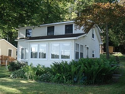 Charming Lakefront Cottage - All-sports lake, fenced lakefront with deck, right on the waters edge. Open floor plan, tastefully decorated and well maintained with updated mechanics. Very little maintenance needed...so enjoy your time at the lake! Gas log fireplace, enclosed porch, updated kitchen with snack bar and appliances. Main floor laundry. Three bedrooms, easily sleeps 8, and 1.5 baths.This company makes no warranty or representations about the contents of this data.Taxes could change for the buyer after a closed transaction.
