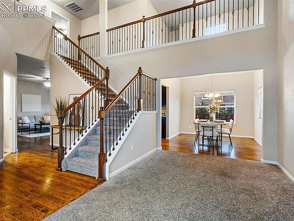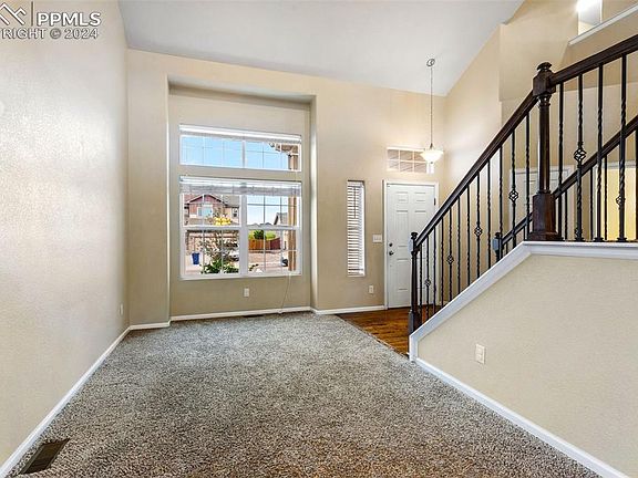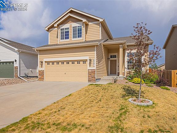 Welcome to the sought-after Forest Meadows community! Step into this immaculate home flooded with natural light, offering a serene retreat. Unwind in the family room—a perfect spot for relaxation or entertaining guests. Extend the gathering to the spacious oversized patio, ideal for barbecues and outdoor enjoyment. The heart of the home lies in the expansive kitchen, boasting ample cabinet space, granite countertops, and stainless steel appliances— a haven for culinary enthusiasts. Retreat to the primary suite at day's end, featuring a spacious bedroom, a luxurious 5-piece master bath, and a generous walk-in closet. Upstairs, discover a versatile loft area, perfect for a second family room or a home office. The unfinished basement, equipped with rough-in plumbing for a future bath, provides endless possibilities to tailor the space to your family's needs. Outside, relish stunning views of Pikes Peak and the surrounding mountains, enhancing the allure of this remarkable home. This home is conveniently located close to the Grand Peak Academy Neighborhood Charter School and is in driving distance of D20 schools, new retails, shopping and entertainment.