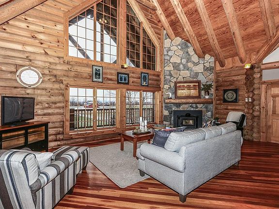 This exquisite log home in Harrison will make you feel like you are on vacation every day. Many special touches including 2,200 sq ft wrap around decking, metal-panel roof, huge living room with fireplace that spans 24 feet to the ceiling plus so much more. Close to 6,000 sq ft of total living space. Must see to appreciate.