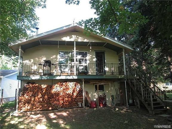 Move in condition! 2 bedroom home with 2-car garage under, (two new garage door openers), with utility room and storage space. Bright knotty pine living/dining room combo. Hardwood floors throughout. Enjoy wood burning Lopi brand stove with 5+ cords of seasoned cherry wood. Deck across back to view deep lot. Updated kitchen and bath. All appliances included.