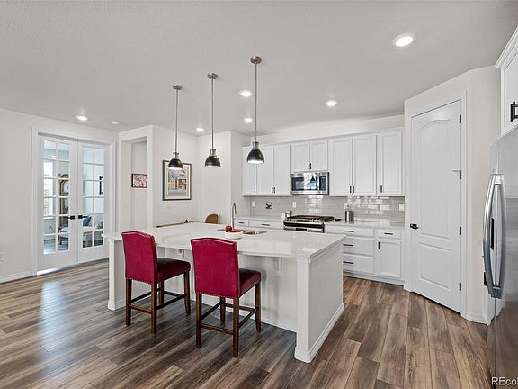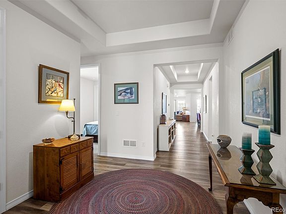 Cinco De Mayo Special!-Seller will pay 1 year of the Blackstone Country Club HOA social membership dues at closing with a full price offer by 5/12/2024. - Welcome Home to Blackstone! Step into the embrace of this charming ranch-style abode, designed for both comfort & convenience. A spacious foyer, adorned with gentle lighting & lofty 9-foot ceilings, extends a warm welcome upon your arrival. Discover two inviting guest bedrooms & a full bath, offering a serene retreat separate from the main living quarters. Continue your journey through the home, where a meticulously crafted mudroom, complete with custom cabinets & quartz countertops, provides seamless access from the oversized 2.5 car garage. The adjacent laundry room, discreetly tucked away, adds to the home's functionality. Transitioning into the heart of the home, revel in the grandeur of the tall coffered ceiling adorning the walkway to the great room. Bathed in natural light, the spacious kitchen beckons with its generous island, quartz countertops, & stainless steel appliances—a haven for culinary enthusiasts. Entertain with ease in the inviting dining and living areas, featuring a stunning stone fireplace & custom mantle. A cozy office/den offers a tranquil space for work or reflection. Retreat to the luxurious primary suite, secluded from the rest of the home, boasting an en-suite bath with dual vanity, walk-in shower, & soaker tub. The expansive walk-in closet, adorned with custom shelving, ensures ample storage. Step outside to the covered back deck & savor the serenity of the picturesque backyard. Nearby, indulge in the community's amenities, including an outdoor pool, fitness center, tennis, pickleball, bocce ball courts, & the Blackstone Country Club golf course. Experience Colorado living at its best with a stunning Colorado sunset from the neighborhood park or enjoy a peaceful stroll along the many paths. Conveniently located near shopping & dining options, this home epitomizes effortless living.
