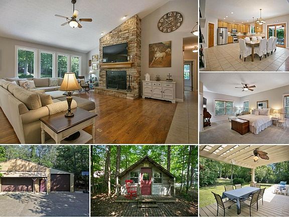 Walk the 3D Tour of ''Hideaway'' and come see it soon because the pictures alone do not do this home justice! This home is tucked away and secluded. Surrounded by trees, you will be delighted when you see the surprises that lurk behind every corner... the winding driveway, the openness of the home, the paths through the backyard, the huge outbuilding... everything about this place is a dream! This sprawling ranch has a huge finished basement which almost doubles the square footage of the home. This home features an open great room with floor to ceiling stone fireplace that is combined with the huge kitchen, the owner's suite is beautiful, laundry room and mud room. Windows line the back of the house for beautiful views and beautiful pergola to enjoy out back! Completely move in ready!