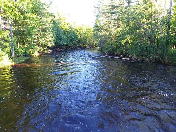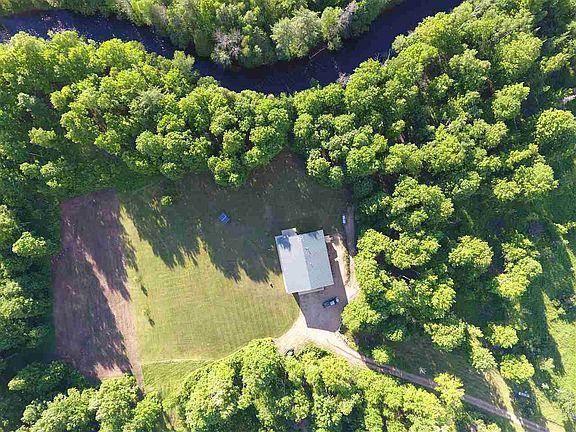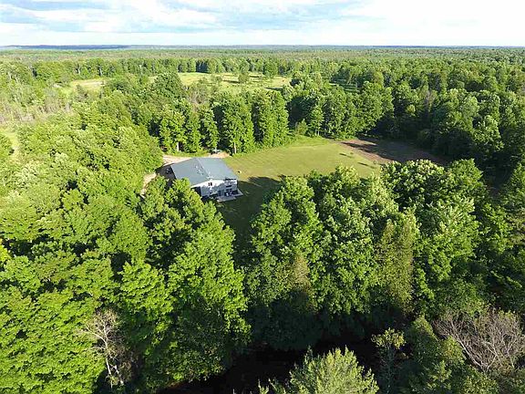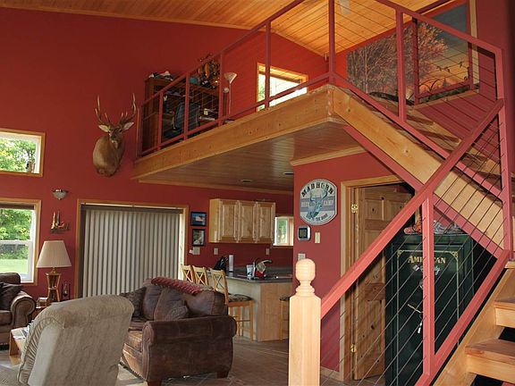 A stunning water frontage property with 157 acres along the Rapid River just five miles from the Rapid River Mini-Mart. The 60x50 fully insulated, low maintenance steel building includes in-floor heating throughout and over 1,100 square feet of beautifully finished living space with decorative tile, custom maple kitchen cupboards, tongue in groove knotty pine ceiling and doors, and a master bedroom loft with a large walk-in closet. The remaining 2,000 square feet is garage/shop space that allows room for multiple vehicles, toys, and includes workbenches and a large hoist that will stay with the property. Live off the grid with solar for 24 DC or 110 electric and a generator that will also stay, a large propane tank, well, and septic. There is also a large, nicely landscaped lawn, patio area, and food plots. Wildlife is abundant including turtles and cranes that return annually to have babies. You must see this property to fully appreciate it! -Owner will divide into two or possible three sections it someone is interested in smaller acreage parcels.