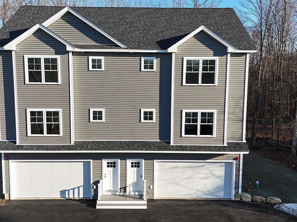 Broker Interest. Introducing a brand-new townhouse-style duplex. This property features two spacious units, each offering 3 bedrooms, 2.5 bathrooms, and an expanded 2-car garage. High-end finishes include quartz countertops, plank flooring, and stainless steel appliances. The open living space encompasses a kitchen, living room, and dining or home office area. The primary bedroom boasts an ensuite bathroom and a large walk-in closet. Additional amenities include central air conditioning, forced air heating, and laundry hookups. The property overlooks a wooded lot, providing a serene green space in the back. Conveniently located near Frisbie Memorial Hospital and close to major routes, shops, grocery stores, and restaurants.