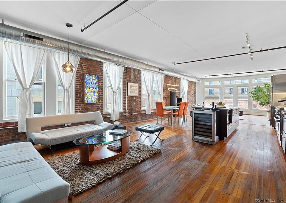 Indulge in the luxurious lifestyle of Soho-style living right in the heart of New Haven with this stunning loft located in the Johnson-Simons Building, just a stone's throw away from the Green. Enter your personal oasis via a private elevator and be greeted by a spacious open living-dining-kitchen area boasting 10-foot-high ceilings, historic brick walls, original old-growth hardwood flooring, a large bay window, and an airy floor plan that seamlessly connects the kitchen, living room, and dining area. Equipped with top-of-the-line appliances, the kitchen features a brand-new Wolf gas range with a convection oven, a commercial-grade Sub-Zero refrigerator, and a 10-foot-long island with ample storage and a stainless steel countertop perfect for entertaining friends. The bedroom, tucked away behind a wall, features sunny south-facing windows and custom California closets. The spa-like bathroom features Jerusalem limestone tiling, a jetted Jacuzzi tub, and a giant walk-in shower. A flexible space at the back of the unit is perfect for use as an office, dressing room, or second bedroom. Enjoy the convenience of a brand-new Bosch washer and dryer in-unit. It also features a designated secured storage unit in the basement. With only three units per floor, this pet-friendly building offers privacy and exclusivity. The Johnson-Simons Building is a 13-unit condominium with professional management, and a secure package room. Located in New Haven's historic Ninth Square, enjoy proximity to all the city's best dining, shopping, and Yale University's stunning campus just across the Green.