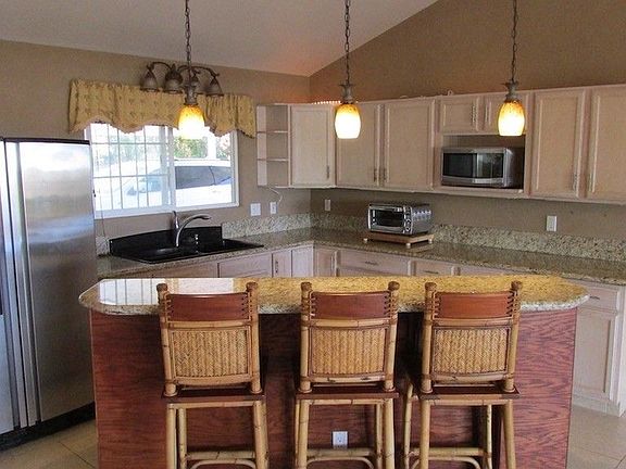 Located in the subdivision of Kealakekua Village, this 3 bedroom 2 bath with attached studio and half bath is close to shopping, gas stations, The Kona Comunity Hospital and restaurants. Built in 2002 this well maintained house features vaulted ceilings, solid concrete floors in all bedrooms and master bathroom. The concrete floors are done in a way that has the look of natural stone. Throughout the kitchen and living room are 16 inch tiles that are in great shape. Master bathroom provides double sinks, a walk in shower as well as a jetted tub for those relaxing moments. This home also has solar hot water. The backyard is fully fenced on top of a lava rock wall and has both a peeka-view of the ocean and fantastic view of Hualalai on clear days.
