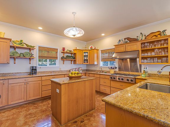 Custom Built 3 Bedroom 3 Bathroom Single Level Home + Attached Studio & 1 Bathroom with Ocean & Sunset Views, situated in a small private cul de sac in the heart of Kealakekua! Quality construction with many upgrades make this truly unique home a must see.