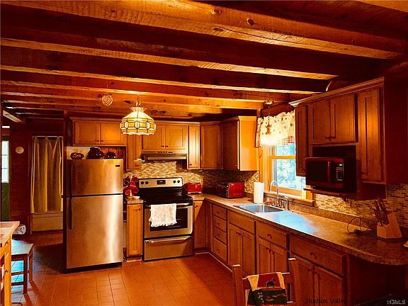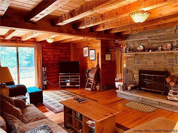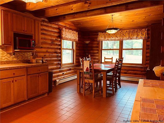 Lincoln log cabin just minutes away from the quaint town of Eldred offered almost entirely furnished! This home has spectacular curb appeal and has been impeccably maintained. Upon entering this charming home, you are greeted by an open living area which is flooded with natural night from all exposures. The living area is perfect for entertaining. It opens up to an expansive back deck and has tons of room for seating around the home's cozy bluestone fireplace! The fully renovated kitchen boasts stainless steel appliances and plenty of counter space for an avid chef. The kitchen also opens up to a dining area which has room for the entire family. Upstairs, there are two sizable bedrooms which share a full bathroom. Completing this home, the walk out basement features a second kitchen and another sizable living area along with two additional bedrooms. The roof was replaced within the last 8 years and the home has a brand new heating system, this is a headache free home!
