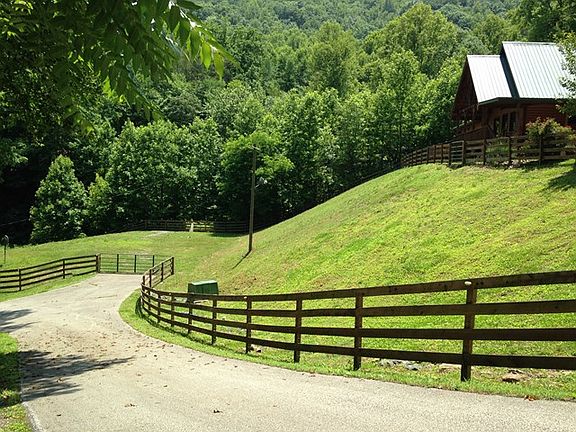 Ready for your RV or horse, this Cherokee Cabin has unlimited potiential! In town living with end of the road privacy and paved access. Motorcycles can pull up into the over-sized double garage that has plenty of room for all your toys or workshop. This 2 bedroom, 2 1/2 bath cabin has a large fenced-in yard with gate and a beautiful view. The lower yard has a secondary water and sewer line where you can park a RV or even build a second cabin. So many possibilities on this 1.41 acres of unrestricted land- no HOA here! A gushing artisan well provides the cabin with an abundant water supply..so much that there is plenty of run-off water for animals to be supplied in the fenced area. Bring your horses! The cabin has Log Veneer siding that boasts of extra insulation properties and has a 75 year warranty. No staining and low maintenance. Convenient location to the Smoky Mountains and about a mile to Harrah's Casino, it would make an ideal vacation rental property. Security system in place. Many more wonderful features inside. Well built and cared for home. Owner Financing is available w/ 20% down payment.