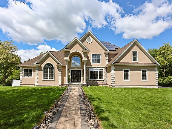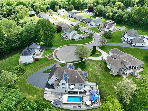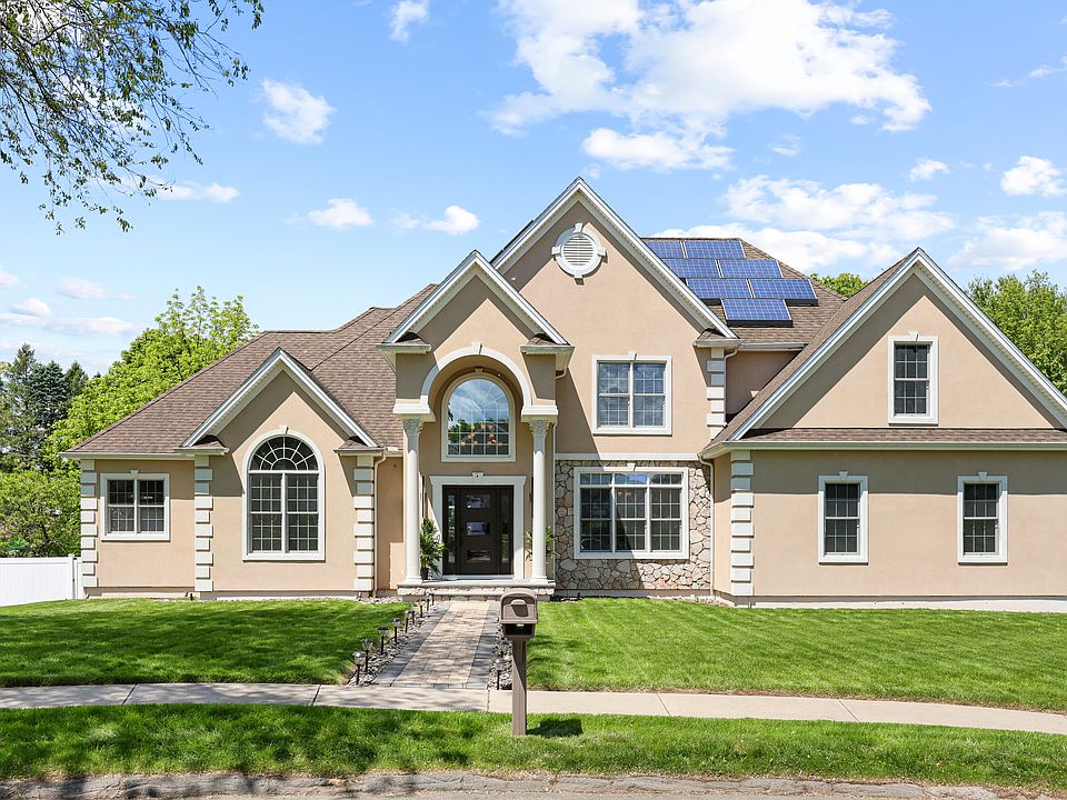 Welcome to this exceptional custom-built home offering the perfect blend of luxury, comfort, and functionality. Featuring 5+ bedrooms and five full and one half baths, this beautifully designed residence showcases a gourmet kitchen with top-of-the-line appliances and elegant finishes, flowing seamlessly into a dramatic two-story great room with a stunning fireplace. The first-floor primary suite offers convenient single-level living, while a second-floor primary suite provides ideal accommodations for guests or multigenerational needs. The fully finished walk-out lower level includes a full kitchen and private entrance, creating a perfect in-law suite. Step outside to your own private oasis with a multi-level deck, sparkling pool, relaxing hot tub, and expansive paver patio-perfect for entertaining or relaxing in style. Additional features include a stucco exterior with coin corners, owned solar panels for energy efficiency, and countless upgrades throughout. This extraordinary property truly has it all-schedule your private showing today!