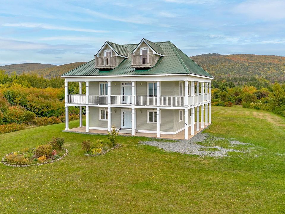 Luxurious Highland Retreat with Ocean to Mountain Views off of the Cabot Trail. Positioned atop 57 ACRES in the serene landscape, this magnificent three-level home offers panoramic views that seamlessly blend ocean coastline with the rugged highlands. Built in 2008, this property combines grandeur with an intimate connection to the natural surroundings. Featuring dual-level wrap-around balcony plus third floor viewing platforms. Boasting 4 spacious bedrooms and 4 bathrooms, each bedroom being complemented by its own ensuite. The main floor includes a self-contained apartment, perfect for guests, alongside laundry and direct access to the attached garage. The second floor is the heart of the home: an expansive open-plan living room, kitchen, and dining area. This central gathering space is framed by large windows and three access points to the wrap-around patio, inviting breathtaking views indoors. The gourmet kitchen is designed for the culinary enthusiast with extensive counter space and a large pantry. The third level is a private sanctuary, home to two primary bedrooms, each boasting open ensuites and private walkouts to the upper balconies. Here, the views elevate to the extraordinary. The sprawling 57-acre estate is not just a home, but a lifestyle investment. With its unmatched location, architectural beauty, and expansive grounds, it offers a rare opportunity to own a piece of paradise in Cap Le Moine. Whether as a family estate or a developmental venture, this home promises to be a sanctuary of peace and potential. Experience the pinnacle of coastal and highland living. A visit to this grand estate in Cap Le Moine is the first step toward owning the extraordinary.