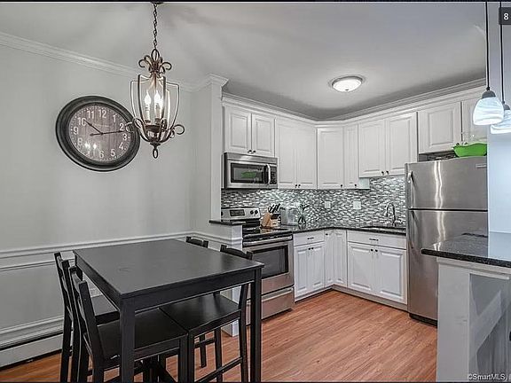 Updated ground level one bedroom available. This unit has a beautifully updated kitchen with granite counter tops, tile back splash, new white cabinets, stainless steel appliances, under cabinet lighting, and granite bar top. Dining area with chandelier, and custom molding. Spacious bedroom with large closet for ample storage. Updated bathroom, toilet, tile floor and shower/tub area. Unit has brand new wood-look vinyl flooring throughout. Recessed lights, ceiling fans, Rent includes heat and hot water. Community washer/dryer and extra space for storage in basement area. Complex amenities include in ground pool, tot/play ground, tennis, basketball and club house. Close to shopping, library, Rt.8, Rt.34 and 67. No Cats, No Dogs or any other pets (large or small), No smoking in unit or common areas, 1st months rent + 2 months security deposit to move in. Application, references, background check and full credit report required for showings.