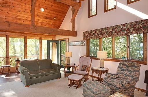 A rare opportunity to own one of the premier, waterfront homes on Lake Boon. Home sits on .87 acres of meticulously manicured land complete with stonewalls, mature trees, bushes and flower beds. From your wrap around, screened, front porch (402 Sq.Ft.), overlooking your own deeded private beach and dock, enjoy an expansive view of Lake Boon 1st basin. Spectacular!! Home has undergone two extensive remodels, 1997 and 2013 and is in pristine condition. Home consist of 2226 Sq.Ft. of open floor plan and features 20 foot, vaulted ceilings in the family room and views of the lake from most rooms. The expansive garage (803 Sq.Ft), with mechanic work space, stores 3 vehicles on an immaculate finished concrete floor. Additionally, there is another garage for one car. All garage space is in basement. Title V in hand. Whether you are looking for a quiet retreat, or a lakefront party house, or both, this house needs to be seen to be appreciated.